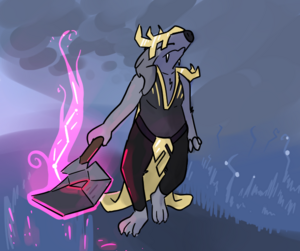 AURAK's axe is shown in more arts than he is.[7][8]