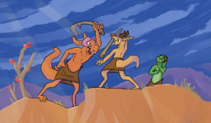 MEAZS (/miːʒ/, MEE-zh) is major character in doughbyte. He is a prominent figure to all 13 Rockbiter tribes, acting as the chieftain of Clearstone during the story's events. He is the father to ZEHAL, husband to ELLAI and brother to JAKAL.
